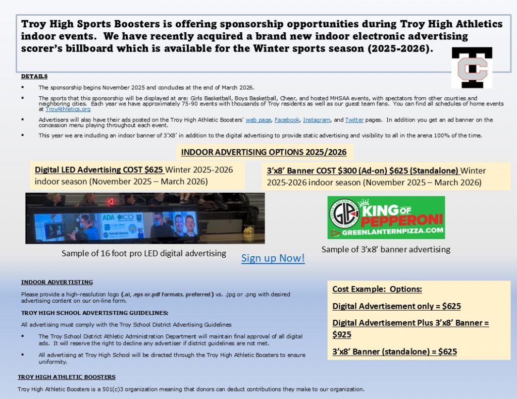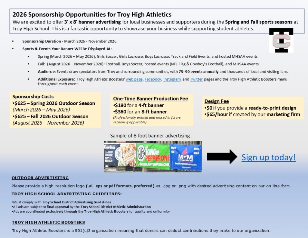 Join us in championing Troy High School athletes! Explore sponsorship benefits, connect with our community, and make a lasting impact. Take this opportunity to show your support and become part of our vibrant team.
